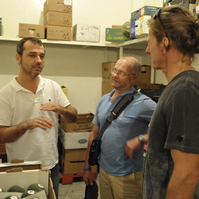 Anschließend gab es dann die ersten Fachgespräche mit Gustavo und unserem Küchenchef ( Michael, rechts im Bild, der langsam den Kochlöffel in die Hand nimmt ) direkt im Kühlraum.