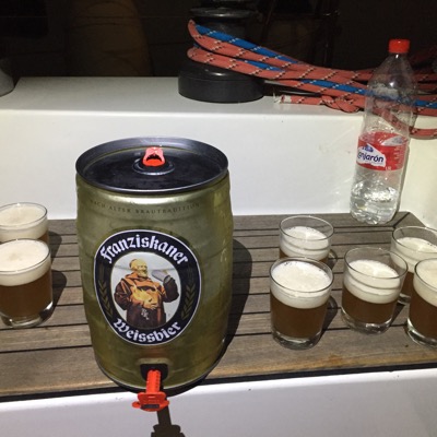 Spontan entschlossen wir uns dann doch noch unser Wasser heute zu kaufen und liefern zu lassen. Ist ja nicht so viel, nur 2,5 l pro Crew und Tag für 18 Tage plus Puffer - in Summe ~500 Liter. Das musste erst mal verstaut werden...